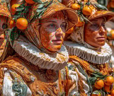 The Battle of the Oranges is rooted in a legend from the 12th century. According to the story, a tyrannical marquis, often identified as Ranieri di Biandrate, attempted to exercise his droit du seigneur (the right to spend the wedding night with brides) on Violetta, the daughter of a miller. Instead of giving in, Violetta chopped off his head, sparking a popular uprising. The citizens of Ivrea stormed the castle and threw off the yoke of tyranny. This rebellion is now re-enacted with oranges as symbolic weapons: the aranceri (orange throwers) on foot represent the people, while those on horse-drawn carts play the marquis' oppressive soldiers.